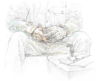窓から入る光が、松岡さんのアイアンを照らす。