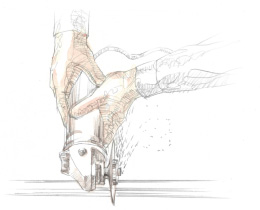 溶かした鉄を型に流し込み成形する鋳造と違い、ロートアイアンの作品には同じ