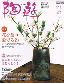 什器・照明・盆栽など、季節の一花をそえて作家作品を紹介している。